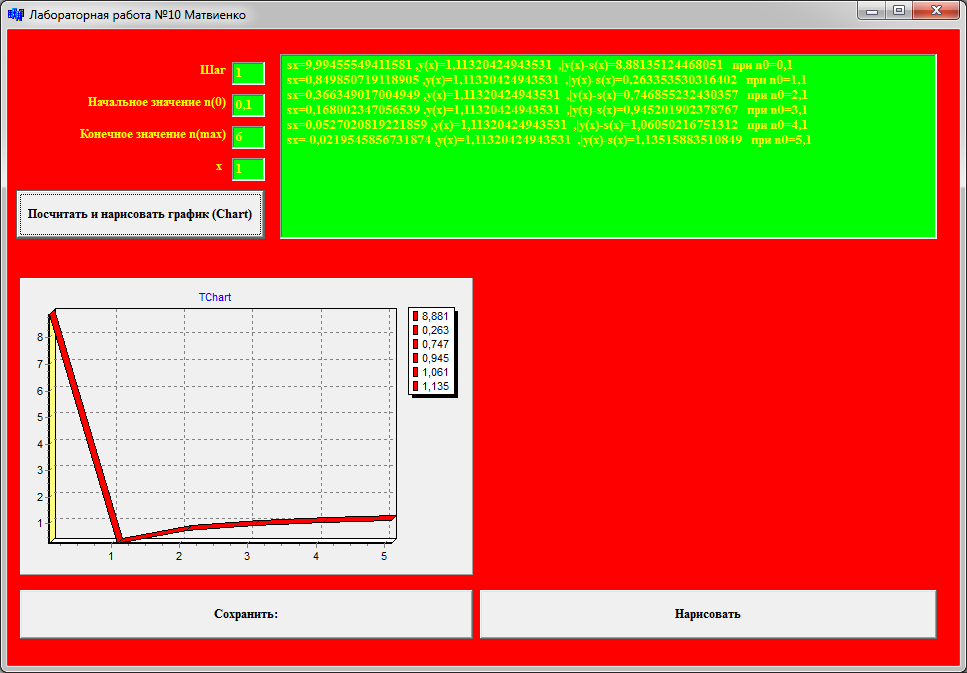 Memo1->Lines->Add("sx="+FloatToStr(sx1(n0,nmax,h,x))+" ,y(x)="+FloatToStr(yx1(x))+" ,|y(x)-s(x)="+FloatToStr(y)+" при n0="+FloatToStr(n0));