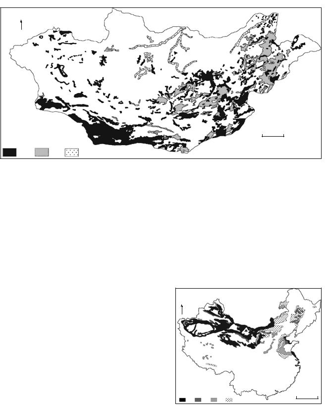 шинстве случаев отсутствуют. Лишь 10% этих почв засолены и приурочены они в основном к соленосным мел)палеогеновым породам, кото) рые в Монголии имеют относительно малое рас) пространение (рис. 3). Крайнеаридные почвы обычно засолены; их засоление связано с эоло) вым привносом солей, либо с формированием на засоленных мел)палеогеновых породах.