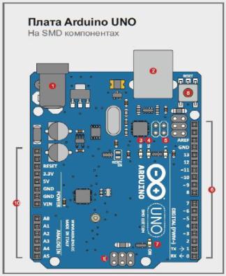 Рисунок 16. Основные элементы микроконтроллера Arduino UNO