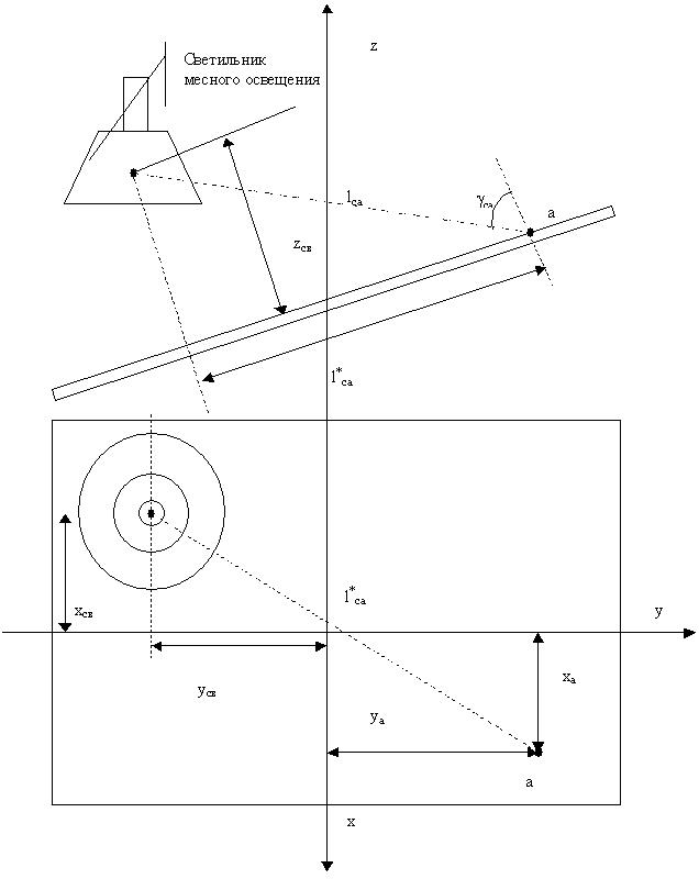 В точке “a” светильник местного освещения должен создавать освещенность, равную нормативному значению для местного освещения (в данном случае 180 лк) с отклонением в пределах –10%- +20%.