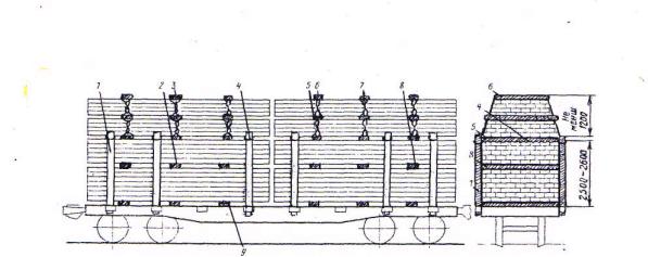 поперечні бруски; 8 – проміжні прокладки; 9 – борт напіввагона