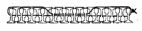 Рейки кожного ряду скріплюють між собою через болтові отвори дротом діаметром не менше 6мм двома нитками, один кінець якої в першому ряду виводять коло крайньої рейки назовні. Другий кінець після виходу з болтового отвору протилежної крайньої рейки перегинають через головки чотирьох рейок, потім пропускають у болтові отвори наступних рейок і, не доходячи чотирьох рейок до кінця, виводять наверх через головки до крайньої рейки, де зв’язують із першим кінцем (рис. 10.23). Другий ряд рейок скріплюють аналогічно до першого, причому дріт після виходу з болтових отворів повинен проходити через головки рейок під низом. Третій ряд зв’язують аналогічно до першого, четвертий – до другого і т.д. Верхній ряд рейок, якщо він непарний, ув’язують з обох кінців.