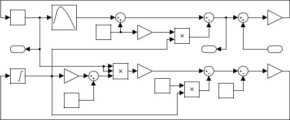 На рисунке 5 представлена структурная схема моделирования уравнений ДВС с регулятором в среде Simulink.