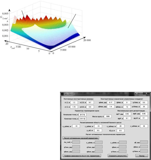 3.Полученные многофакторные регрессионные уравнения, устанавливающие взаимосвязь удельных энергетических затрат при изменении управляемых координат СГК, от технологических параметров рабочего процесса, позволили определить расход топлива ДВС при выполнении заданных перемещений грузов, оптимизировать траектории перемещения груза по энергетическому критерию;