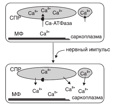 По завершении сокращения уровень ионов Са2+ снижается за счет активного