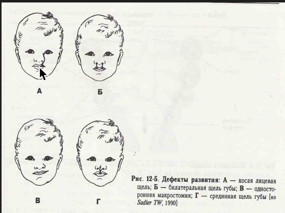 - косая расщелина лица, незарастание носо-слёзной борозды