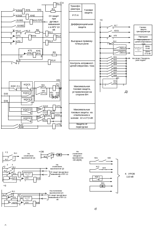 Принципиальная схема релейной защиты понижающего трансформатора 220/27,5/10,5 кВ