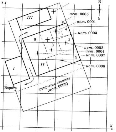 1 – механический участок; 2 – участок сварки; 3 – участок окраски; 4 – участок деревообработки; 5 – участок ТО и ТР; 6 – крытая стоянка; I – административный корпус; II – производственный корпус; III – котельная