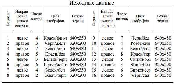 4.3 Отредактировать исходный модуль программы SPIRAL для своего варианта задания (таблица 11.1).