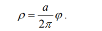 Уравнение Архимедовой спирали в полярной системе координат записывается как ρ ϕ = k , где k – смещение точки M по лучу, при его повороте на угол ϕ равный одному радиану. Повороту прямой на 2π соответствует смещение a = |BM| = |MA| = 2kπ . Число a называется шагом спирали. Уравнение Архимедовой спирали можно переписать так: