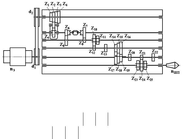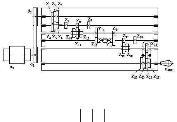ческая цепь главного движения условного станка (вариант № 9) |