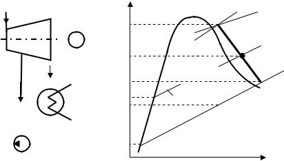На пересечении линии s0 = const и давления в конденсаторе рК = = 4 кПа находим энтальпию пара в конце изоэнтропного расширения hКS = 1980 кДж/кг.