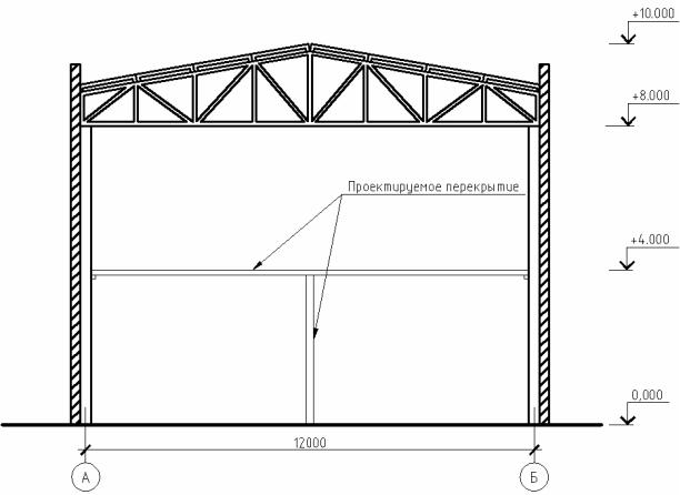 Для существующего однопролетного здания необходимо запроектировать антресольный этаж, как показано на рис. 2.1.