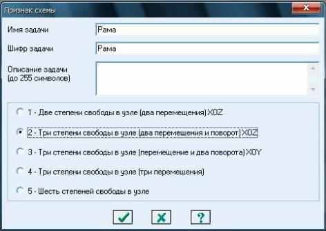 –признак схемы – 2 – три степени свободы в узле (два перемещения и поворот) X0Z.
