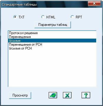 В диалоговом окне «Стандартные таблицы» производится выбор нужной таблицы из списка результатов, созданного на основании текущей задачи (рис.5.5).