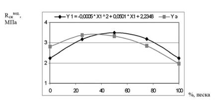 Рис. 4.4. Влияние процентного содержания вяжущего на R сж вод