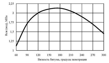 Рис. 2.2. Влияние вязкости битума на прочность в водонасыщенном состоянии укрепленного грунта