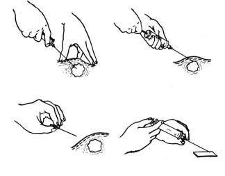 впросвет иглы; в – извлечение иглы; г – выдавливание пунктата на стекло