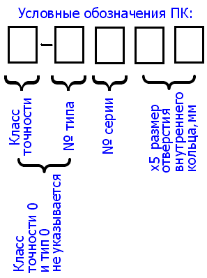 Обозначения точности подшипников нормального класса (“нулевого”) слева от основного обозначения не ставятся за исключением подшипников, у которых нормирован радиальный зазор.