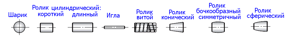 Телами качения в подшипнике могут быть шарики (в этом случае осуществляется их точечный контакт с наружным и внутренним кольцами) или ролики – цилиндрические или конические (при этом зона контакта представляет собой линию). Сепараторы разделяют и направляют тела качения. В ПК без сепаратора тела качения набегают друг на друга. Установка сепаратора значительно уменьшает потери на трение, так как сепаратор является свободно плавающим и вращающимся элементом.