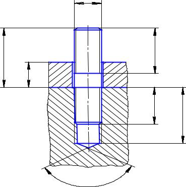 резьбовое отверстие детали. Длина ввинчиваемого конца L1 зависит от материала детали, в которой выполнено резьбовое отверстие:
