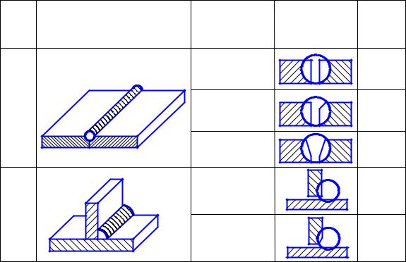 Втабл. 3 приведены примеры изображения некоторых швов сварных соединений, выполненных электродуговой сваркой по ГОСТ 5264-80, а также условное буквенно-цифровое обозначение сварного шва.