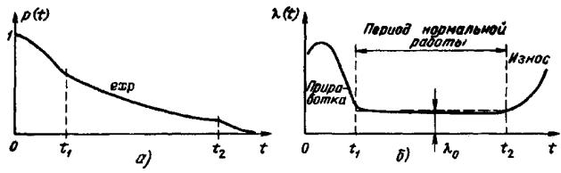 Рисунок 2.1 - Функции безотказной работы (а) и интенсивность отказов (б)