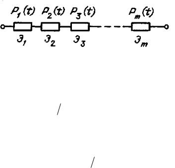 ному отказу в работе передатчика в целом. Эти элементы включаются в схему расчета надежности последовательно (рис. 2.2), другие же элементы в первом приближении не учитываются. Из рис. 2.2 следует, что вероятность безотказной работы передатчика (или отдельно рассматриваемого его блока)