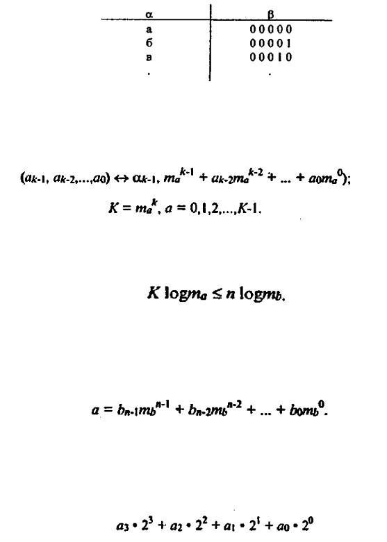 Простейшее правило равномерного блочного кодирования при ma mb основано на перезаписи k-разрядных ma -ичных чисел а в mb -ичную систему счисления:
