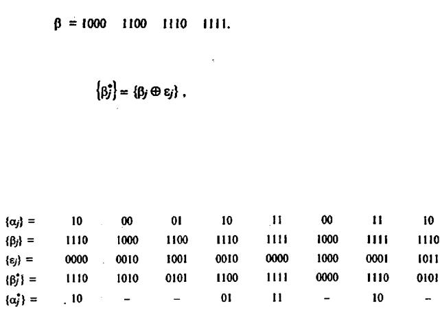 Как и в предыдущем примере, введем ошибку в один из символов принятой последовательности bj , например в четвертой позиции b3 принята