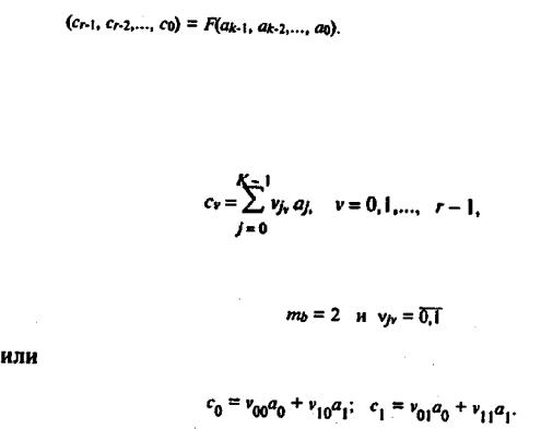 где — суммирование по модулю тb; vjv — произвольные mb -ичные числа. В дальнейшем рассматриваются лишь двоичные линейные коды, т.е.