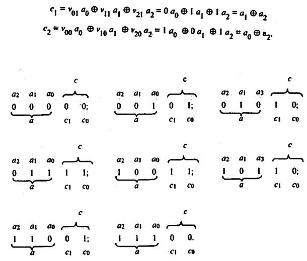 и, подставляя в них все возможные сочетания a j , получим все К = 23 = 8 кодовых комбинаций