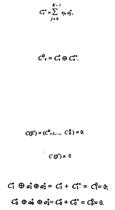 Условимся считать, что информационные символы расположены на первых К позициях кода, в проверочные — на последних r позициях блока и будем обозначать их соответственно a j , cv ,, где j 0, 1,..., K 1; v 0, 1,..., r 1.. Тогда