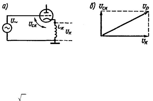 (рис. 1.1, а). Под действием этого напряжения через лампу пройдет ток IK в фазе с данным напряжением UCK , который создает на индуктивности вывода катода напряжение U K , опережающее ток на 90°. Векторная сумма напряже-