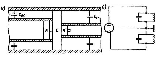 (см. рис. 1.2, а) и отрезком коаксиальной линии, образованной внешней поверхностью катодной К трубы и внутренней поверхностью сеточной С трубы.