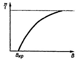 критического режима, где индукция меньше критической, т. е. все электроны, вышедшие из катода, доходят до анода как в обычном диоде, и высокочастотные колебания не возникают. Между параболой и осью абсцисс В находится область сверхкритического режима, в которой колебания возможны при выполнении условия синхронизма. Каждому виду колебаний соответствует прямая, определяющая значение порогового напряжения, ниже которого не может возбудиться данный вид колебаний.