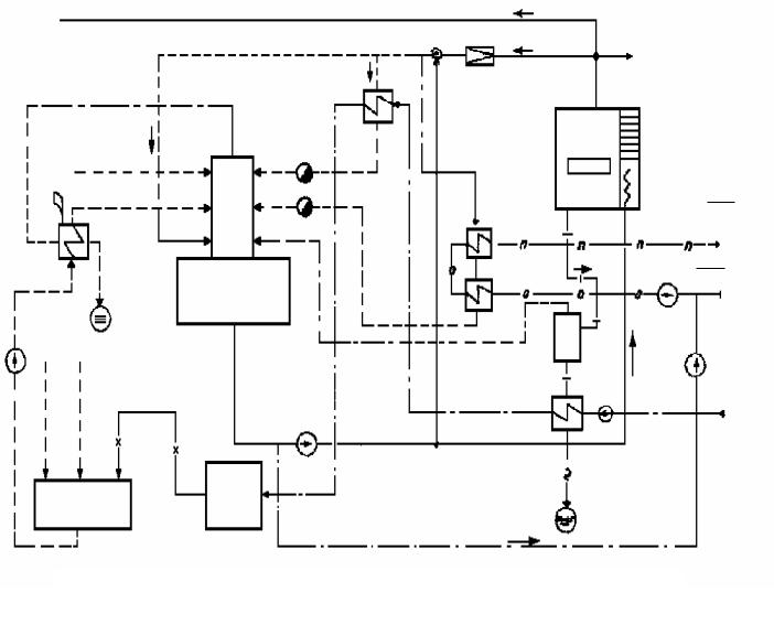 Взадачу расчета тепловой схемы входит определение расходов, температур и давлений теплоносителей (пара и горячей воды) по их потокам в пределах установки, а также определение суммарного расхода пара и тепла на всю установку в целом при различных режимах