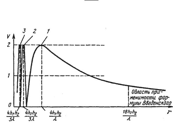 В освещенной зоне поле имеет интерференционную структуру за счет сложения прямой и отраженной от Земли волн. Расчет напряженности поля в этой зоне базируется на интерференционной формуле (3.5).