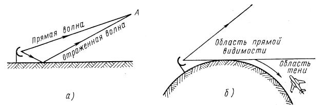 1)отражением радиоволн от поверхности Земли (рисунок 2.7, а) и связанным с ним явлением интерференции радиоволн;