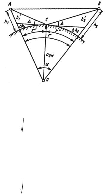 плоскость S, касательную к сферической земной поверхности в точке отражения С (рисунок 3.5). Тогда разность хода r2 – r1 над сферической поверхностью будет равна разности хода над плоскостью S и может быть рассчитана