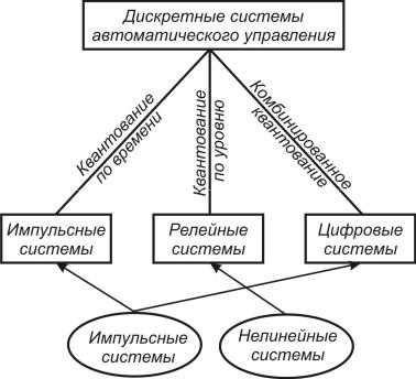 Классификационная схема для дискретных систем показана на рис. 6. Системы с квантованием сигнала по времени являются импульсными системами. Для таких систем используются специфические математические модели и разработаны соответствующие методы теории автоматического управления [1,3].