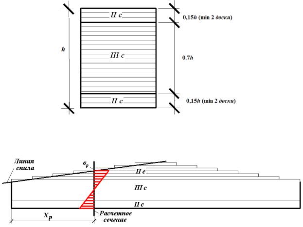 Эпюру распределения нормальных напряжений по длине балки в зависимости от высоты поперечного сечения балки необходимо построить после определения положения расчетного сечения хр, в котором действуют максимальные нормальные напряжения.