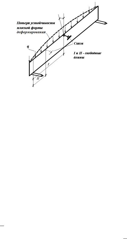 Данная проверка производится по СП [1, п. 6.14, ф. (24)]. Принципиальная схема для расчета потери устойчивости плоской формы деформирования приведена на рис. 4.9.