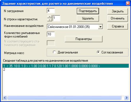 Этап 8. Форм рован е таблицы параметров динамических воздействий