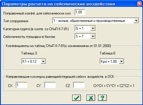 В диалоговом окне Параметры расчета на сейсмические воздействия