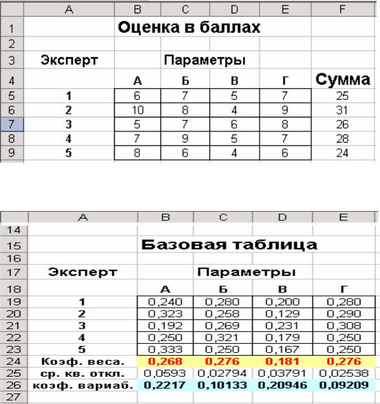 Для каждого эксперта составить отдельную таблицу по форме, представленной на рис. 52.