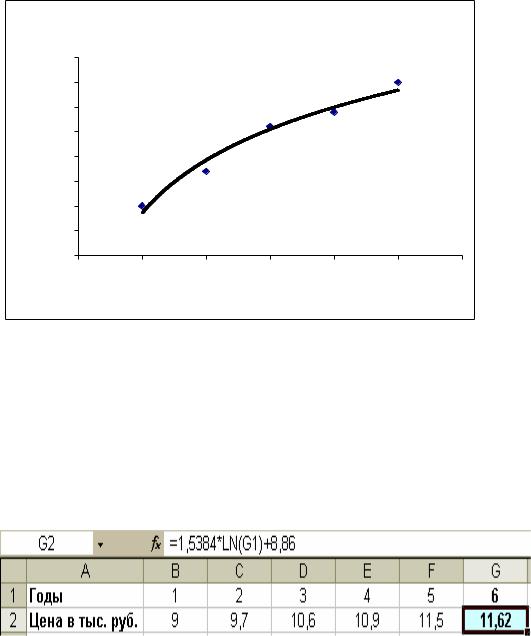 Ожидаемая цена на следующий год по логарифмической зависимости = 11,62 тыс. руб.