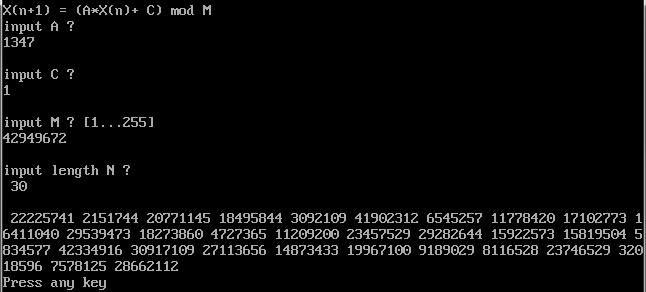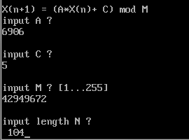 Ask_A db 'X(n+1) = (A*X(n)+ C) mod M', 13, 10, 'input A ?', 13, 10, '$'