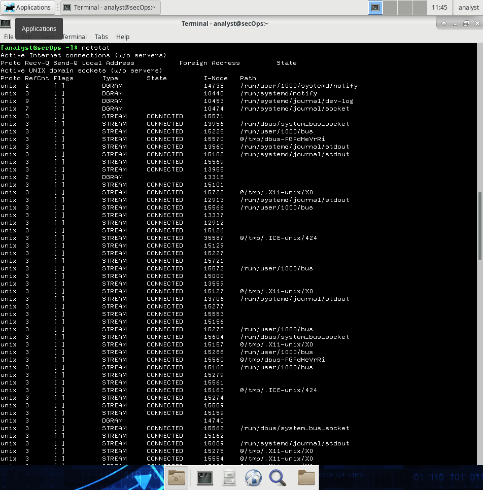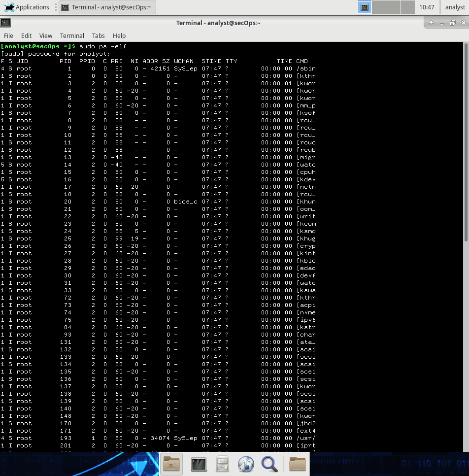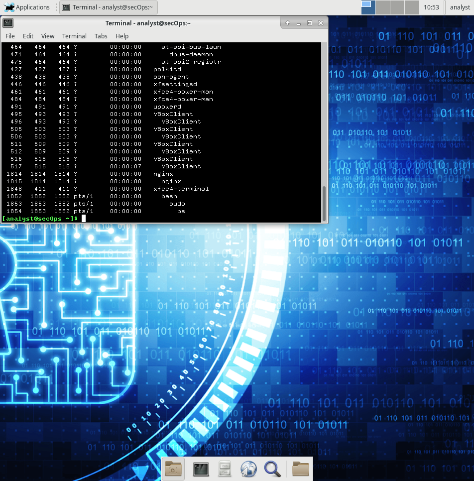 Примечание. Выходные данные команды ps будут зависеть от состояния ВМ CyberOps Workstation.