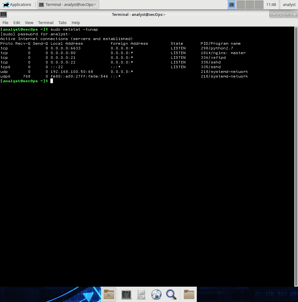 В этой лабораторной работе вы будете использовать командную строку Linux для определения серверов, работающих на данном компьютере.
